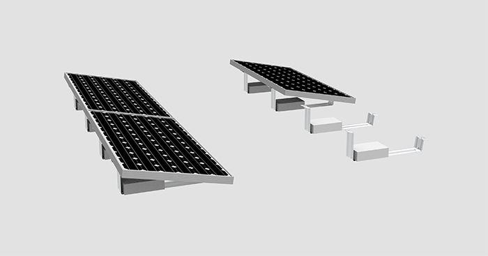 Das WOCHN ECO N/S Ballast-Montagesystem ist ein Montagesystem für die Installation von PV-Modulen auf Flachdächern mit Süd- oder Nordausrichtung. Es wird auf Gebäuden verwendet, deren Dach aus Bitumenmembranen, EPDM/TPO/PVC-Membrandächern und Grün-/Kiesdächern besteht. Dieses System mit geringer Belastung und ohne Perforation der Dachoberfläche erleichtert die Installation von Paneelen und bewahrt die Integrität des Daches. Und besser für die Installation im Wohnbereich geeignet, da es sehr einfach und leicht zu lagern ist. Das gesamte System besteht aus einem Minimum an Komponenten für die Flachdachinstallation und besteht aus nur einem Satz. Es spart Zeit und senkt die Arbeitskosten für Installateure, da für die Installation nur minimale Komponenten benötigt werden. Der Paneelrahmen muss lediglich mit einer Schraube am ECO-Fuß befestigt werden. Für den Beinprozess wird 100 % Aluminium verwendet. Dieses Metall hat viele Vorteile, unter anderem ist es leicht, stabil, recycelbar und weist eine hohe Korrosionsbeständigkeit auf.